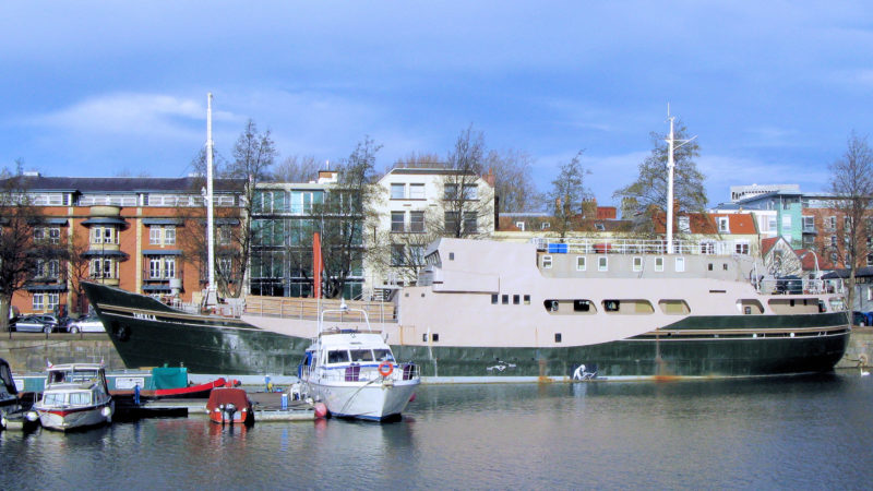 Abandoned and unloved for seven years after running aground off the coast of northern England, the Thekla was left half submerged in a derelict English dock in Sunderland. Luckily Ki Longfellow-Stanshall and her husband Vivian Stanshall bought the boat in 1982. They assembled a small, inexperienced crew and sailed it for six days and six nights before reaching their final destination in Bristol’s Floating Harbour.