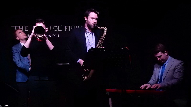 There’s an element of mystery about the Jazz Defenders, pianist George Cooper’s quintet celebration of the classic Blue Note sound. This was to be only their third gig, the second having been at this year’s Bristol Jazz Festival, and yet they’ve had an album in the pipeline since last August, apparently, and most of their tunes were specially composed by George in collaboration with the others. It all added up to the paradox of a brand new band with a history behind it. And the band itself was hardly bringing brand new faces to The Fringe, being five of the busiest and best on the Bristol jazz scene. But the Blue Note era is probably one of the most enduringly popular of modern jazz idioms and the ‘jazziest’ in sound and the full house at the Fringe was definitely up for a nostalgic night’s music.