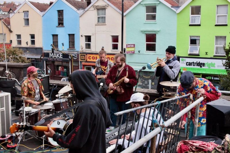 The band recorded a rooftop live sessions above their ‘spiritual home’ the Gallimaufry for Jamie Cullum’s Radio 2 jazz show in 2021 – photo: Snazzback