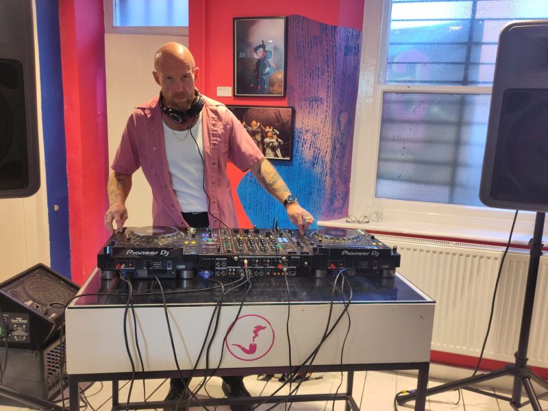 Bass player Adam Devonshire DJ’d at the launch of the exhibition, which runs until June 7 – photo: Ursula Billington