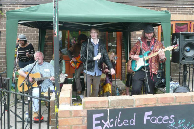 The group was set up in 2003 by Elliot and musician / actor Ernie Bell (now sadly passed on)…it has gone from the original once a month music group in a community centre to twice weekly music workshops at Factory Studios Barton Hill, individual tuition, gigs, social events, festivals…we even put the guys on at the Colston Hall a couple of years ago.