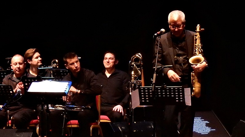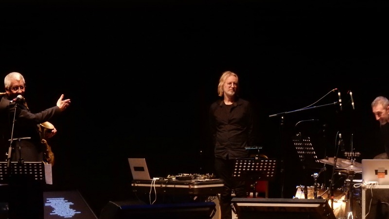 Commissioning Andy Sheppard to compose this gig to open this year’s Bristol International Jazz and Blues Festival meant a real fanfare to the weekends Jazzathon, with an 8-strong local horn section complementing the saxophonist’s European trio with Norwegian guitarist Eivind Aarset and Italian percussionist Michele Rabbia. Echoing the still-relevant themes of the legendary silent film Metropolis this arrangement provided a counterpoint between the harsh mechanics of automation and the impassioned attempts of dissidents trying to restore compassion to the world, though this distinction was rarely as simplistic as it might sound.