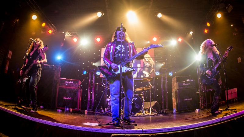 Using the Outlaws’ ace cover of (Ghost) Riders in the Sky as their intro, Atlanta’s hairiest Pussy swiftly get down to addressing their staple subjects: sex (Keep On Fuckin’), drugs (High as Hell) and, um, more sex (Struttin’ Cock) and more drugs (She’s Got the Drugs). Portly, cowboy-hatted frontman Blaine Cartwright leaves it to the female members of the band, Bonnie Buitrago and Ruyter Suys (one of the world’s 12 greatest women guitarists according to that noted authority on the subject, Elle magazine), to work up most of the sweat. Suys, in particular, hurls herself around the stage without missing a note, tossing her cockscrew curls like a more comely lady version of Twisted Sister’s Dee Snider, and spitting beer all over the audience. Stand-in drummer Rob Hulsman, on loan from Robert Plant’s band, works both beard and drums like a true pro.