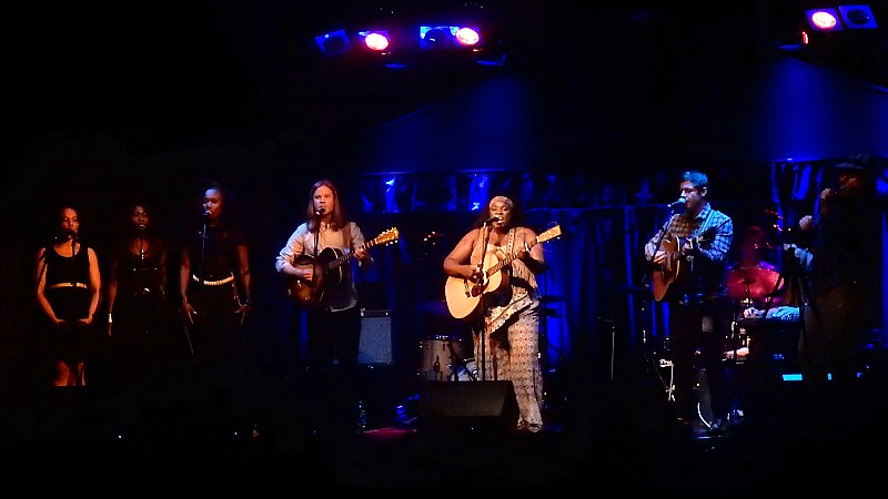 After the minimalism of the support act Yola Carter’s band was an expansive contrast, with no less than ten musicians – including two drummers – plus the lady herself. They kicked off into a mighty roar, a country-rock orchestra with Jeff Smith’s soaring pedal steel guitar and Aaron Catlow’s fiddle to the fore and Ms Carter’s ebullient vocals ripping into Home, the opening track of her Orphan Offering EP. OK – she was actually playing to a home audience in a packed Bristol room but Yola’s sheer assurance as a performer is an awesome experience anywhere, and it felt as though anything less than ten musicians wouldn’t have had a chance against that vocal power.