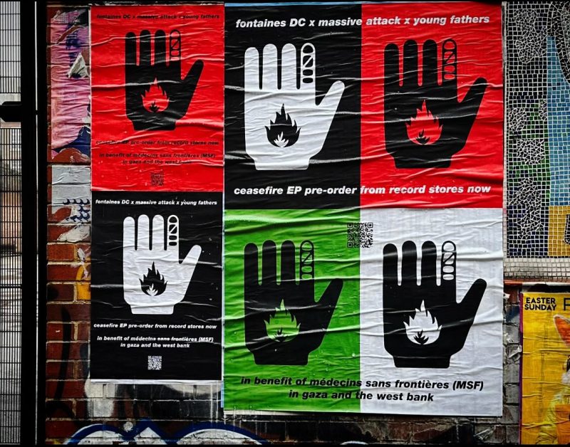 Massive Attack has released a fundraiser vinyl EP collaboration with Young Fathers and Fontaines DC for Doctors Without Borders operating in Gaza and the West Bank, available to purchase at: fontainesdc-massiveattack-youngfathers.bandcamp.com/album/ceasefire – photo: Massive Attack