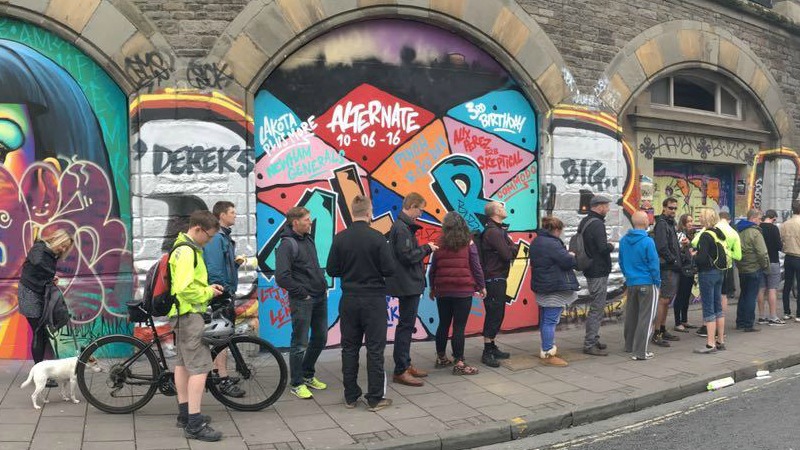 Queues stretched hundreds of yards from Idle Hands on Stokes Croft and Bristol Ticket Shop on High Street with fans choosing to buy their tickets in person rather than risking the online lottery.