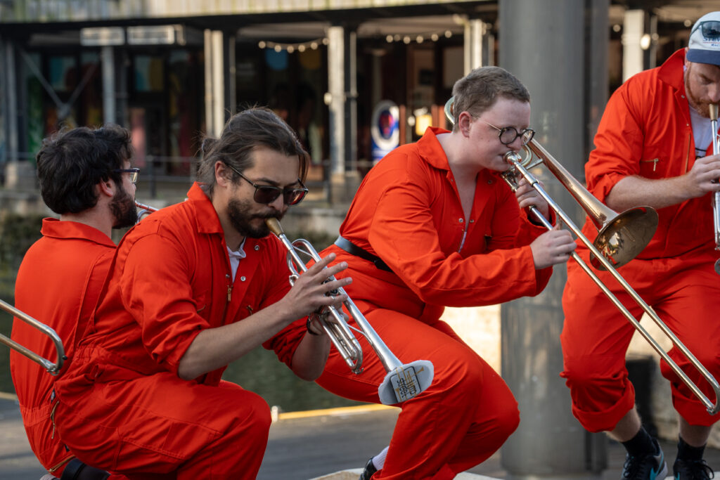 A blaze of fiery orange ignited the Cascade Steps on Friday morning as a parade hit the streets of Bristol in celebration of the Proms’ inaugural visit to the Bristol Beacon.