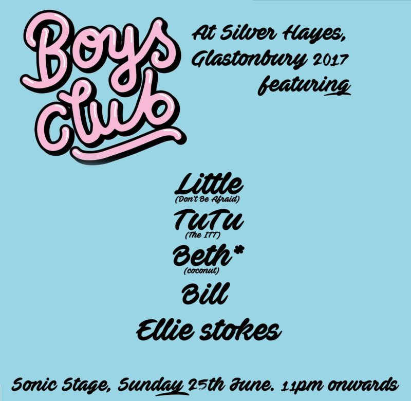 Boys Club will play Silver Hayes’ Silent Disco at Glastonbury Festival’s Sonic Stage on Sunday, June 25 from 11pm. Find out more at www.facebook.com/littleboysclub