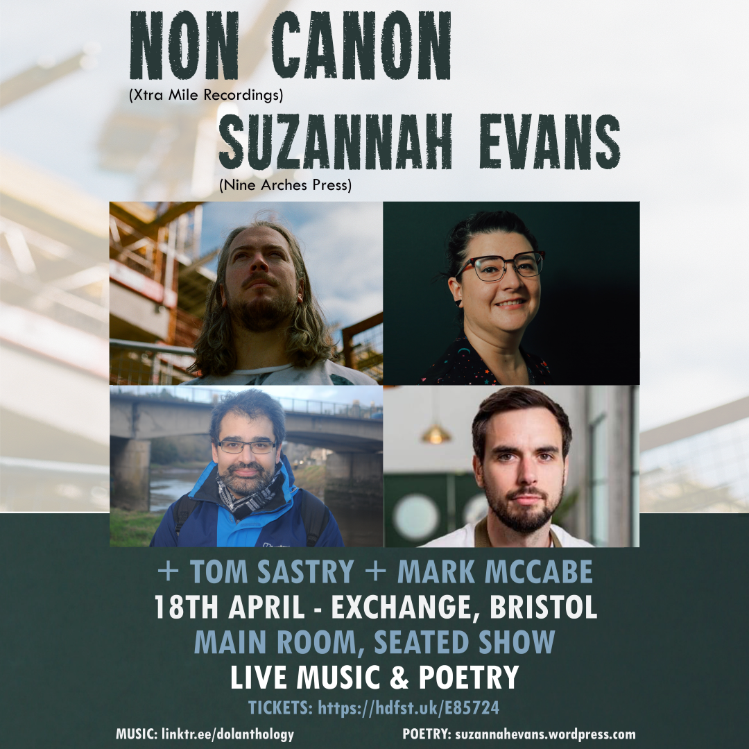 Non Canon will be playing songs from his two albums released by Xtra Mile Recordings, while Evans will be performing poems from her collections Near Future, and Space Baby (Nine Arches Press).