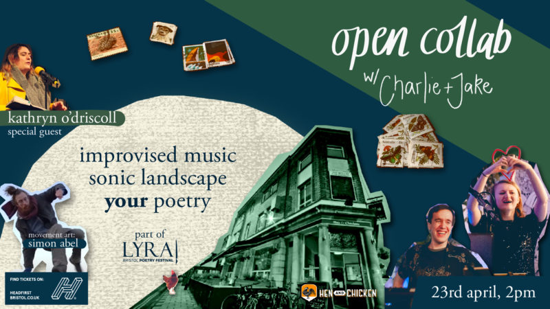 On April 23, at the Hen & Chicken’s Chicken Shed, Charlie + Jake will be presenting a special edition of Open Collab, as part of Lyra – Bristol Poetry Festival.
