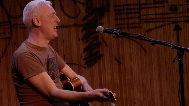 Sat on a chair in the middle of the Foyer stage Paul Bradley’s isolated figure emphasised the enormity of the space around him and the scale of his task. As an improvising musician and songwriter he has a CD of improvised material to present via the medium of improvisation … “No-one’s ever heard this music before and no-one’ll ever hear it again,” he explained at one point. He had an interesting audience to convince, too, dominated by the queue for a Kraftwerk-themed show upstairs and fans of Welsh rockers Stereophonics.