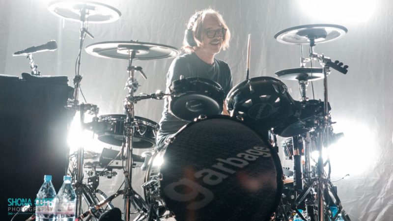There’s nothing remotely odd about watching a bunch of 50 somethings rocking out this evening. Garbage lead singer Shirley Manson is sporting bright orange hair with a matching face paint streak across her eyes. Not forgetting Butch Vig on drums who will still be cool long into the grave having produced Nirvana’s seminal album: Nevermind. Taking us through the wealth of songs that make up the bumper reissue of Version 2.0, they begin where the album concludes; with the moody atmospheric brewing’s of Afterglow.