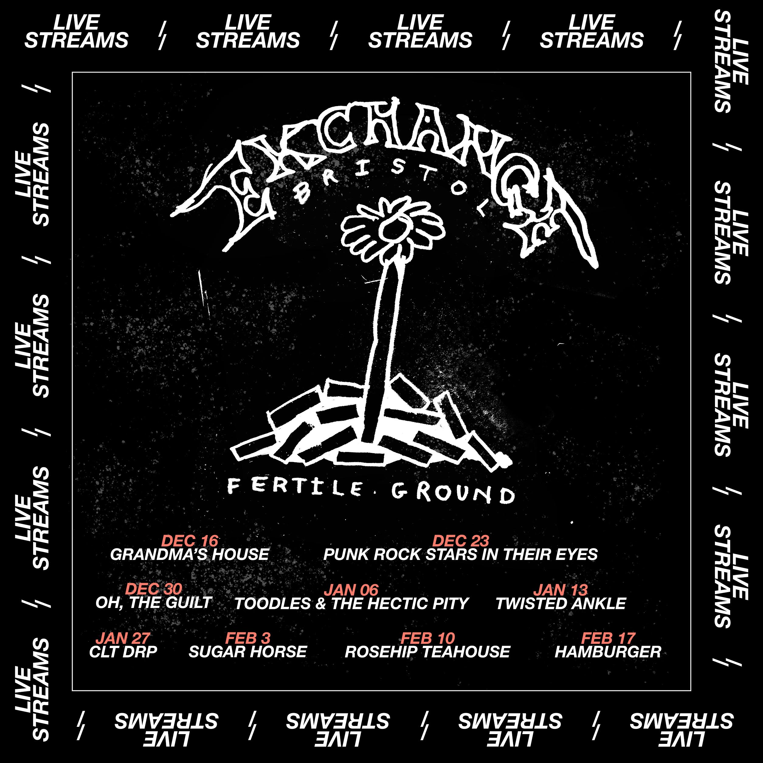 Streams begin on Wednesday, December 16 and will take place every week via Exchange’s social media and YouTube channel. All bands and behind-the-scenes crew will be fully paid.