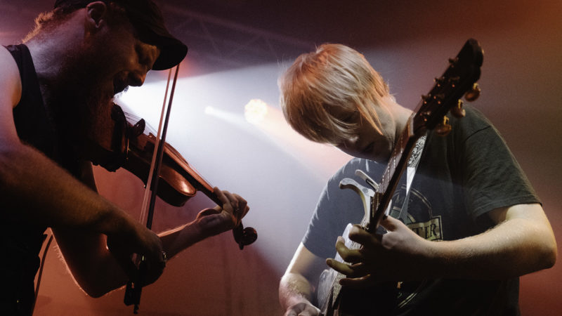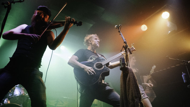 Vince “Gingé” Martin’s violin was smokin’, played with the attitude of a shredder it dominated the songs (but in a really, really good way); a keening and alluring dervish dance, it was no wonder the only cover was a breakneck Devil Went Down to Georgia. Although this rendition was more the Devil Went Down to Cornwall…for a rum fuelled hoedown. Not the fastest tune in the set though, arguably that was the “…song about a chicken…” (aka Oncoming Tide) which made no mention of chickens at all focussing instead on sailing boats on the big blue sea. No, me neither. But then words didn’t matter quite so much as this set was for dancing like buccaneers on speed.
