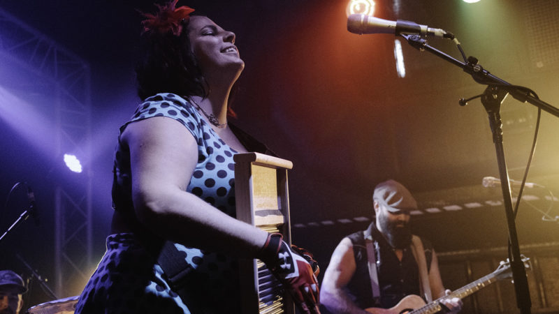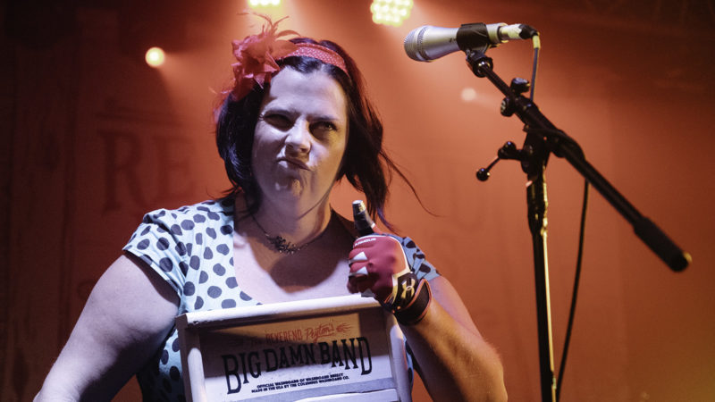 Exhibit B: The Musicianship. Maxwell Senteney is an assuming fellow but bugger me does he know the way round his (minimalist) drum kit. Rock solid, his beats drove the bluesier numbers; propelled the up-tempo cuts and he knows the secret of the swing – no plodding, no thumping; he never left the pocket and kept the songs honest. Breezy Peyton’s washboard really added zing to the songs. Whilst The Reverend gave us the bottom end and melody, ably supported by Senteney’s drums, her washboard really lifted the tunes out of the ordinary. The metallic zigging and zagging giving the tunes maximum zizz, pretty damn impressive too given The Reverend mentioned she was poorly bad.