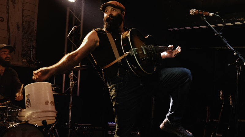 As for The Reverend’s playing, well he excelled throughout whether on National, acoustic, tiny electric or cigar box guitar; ofttimes using his thumb to plonk out a bassline, his fingers picking out a melody. His solos were just the right side of off kilter to provide more unusual delights, augmented with delicious use of the bottleneck. And if you’re wondering how he got so good then listen & look here.