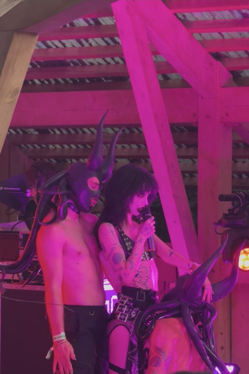 While the black leather harnesses are at this point a uniform at Trees, Thug was very much the dom of the stage as they rolled up against their dancers who’s faces were clad in latex masks with elongated curly tentacles.