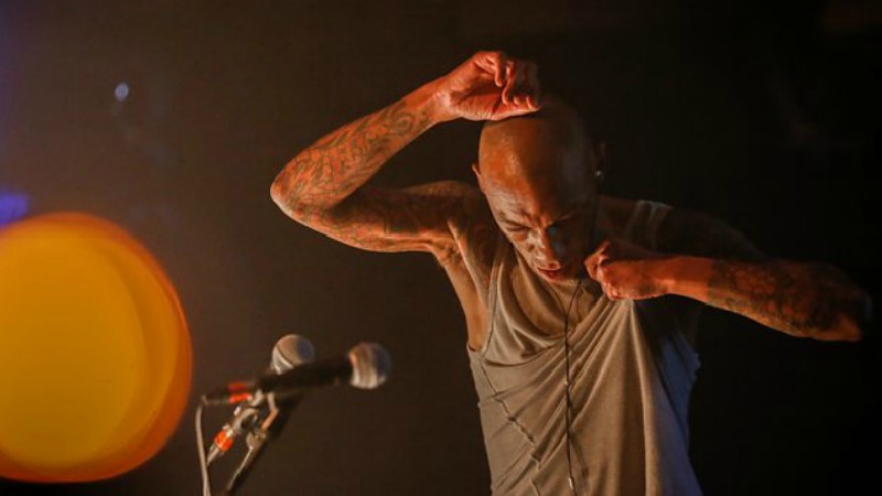 Perhaps the most eagerly anticipated artist of the night was Knowle Wester Tricky. Tricky’s live shows can be intense, brooding events which leave the audience wrung out and strung out. This was not one of them. His performance can be charitably described as lazy and unengaging. He spent much of the set wandering around fiddling with his vest, and languidly muttering. Still, the drummer probably had some great views of his ripped abs. Meanwhile the band played fairly pedestrian bass and squalling guitar laden versions of tracks from the new album ‘Skilled Mechanics’. Could have done much, much better.