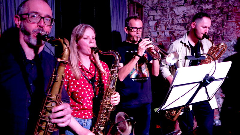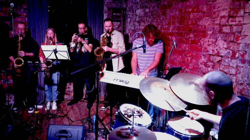 Needless to say it all proved highly crowd-pleasing stuff and stoked its way to a nicely climactic ending topped off by that aforementioned Squarepusher tribute, gently rolling drums propelling enmeshed brass harmonies towards a pleasing climax. Naturally such a bunch of talent had acquitted itself really well, whether delivering some excellent solos or playing out the complexities of the charts but full credit must go to Matt Stockham-Brown for the imagination and artistry of his compositions.