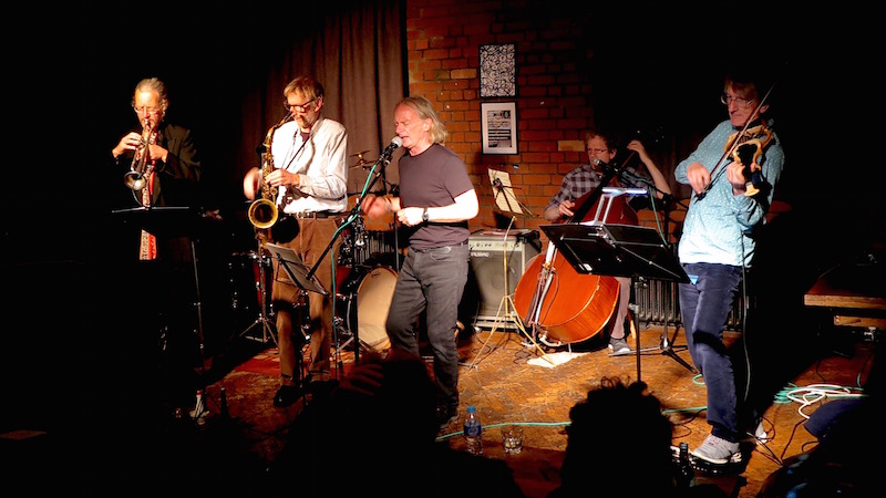 Blazing Flame Quintet’s David Mowatt, Mark Langford, Steve Day, Julian Dale and Peter Evans