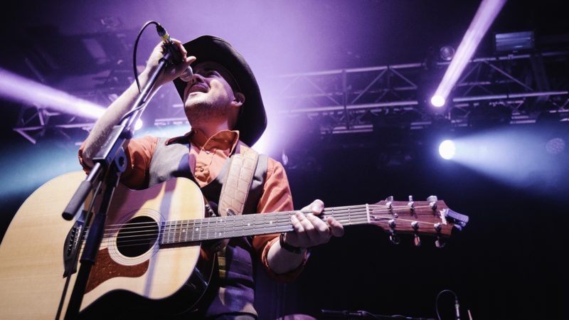 Firstly in Ray Lannon the band have a massive vocal presence, he’s the owner of a Johnny Cash sized voice in an Angus Young sized body and his deep, rich powerful vocals could not be ignored. He led the band with aplomb (despite a monster hangover. Allegedly.) An engaging presence, his acoustic work underpinned the songs and his fetching banter entertained between numbers. He also left your correspondent with a severe case of hat envy.