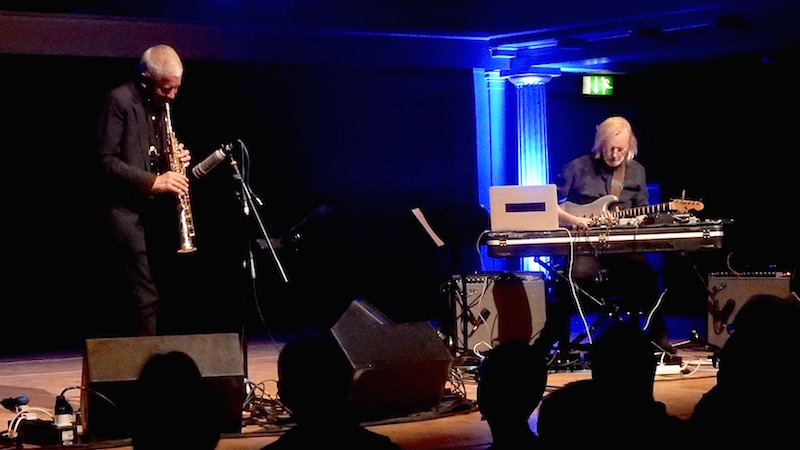 Calling Eivind Aarset a guitarist is an over-simplification, of course, though he uses a guitar to trigger an array of electronics and effects, and the opening number saw him gradually assembling a rolling orchestral wave from loops and sustained sounds while Andy layered a chorale of soprano sax using his own pedal set-up.