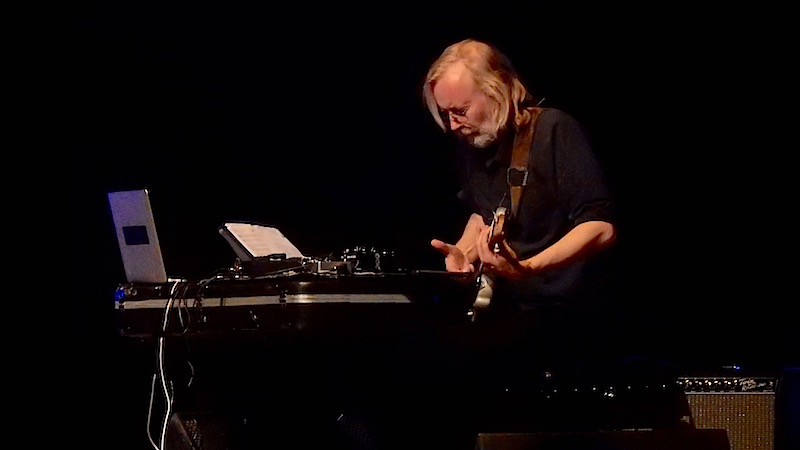 It had been fascinating to watch Eivind Aarset at work in a musical context so stripped down that you could pick out how he constructed and processed the sound at his disposal. Hunched over his guitar, his angled features and dangling grey hair somehow recalling that old Picasso picture, his darting hands (and dabbing feet) constantly flickered across the controls of the many devices in front of him. Given the complexity of the set-up it was amazing that only once was there an audible glitch, instantly quashed, while he otherwise maintained four or five separate sound elements and even, at times, also actually played the guitar!
