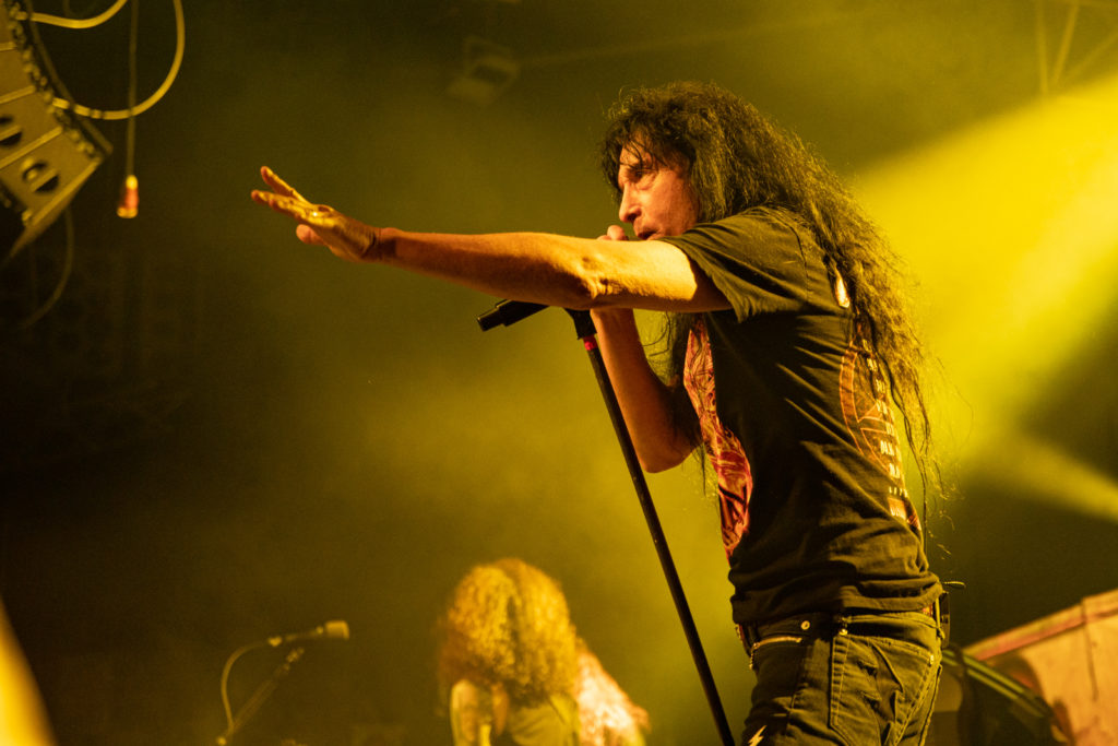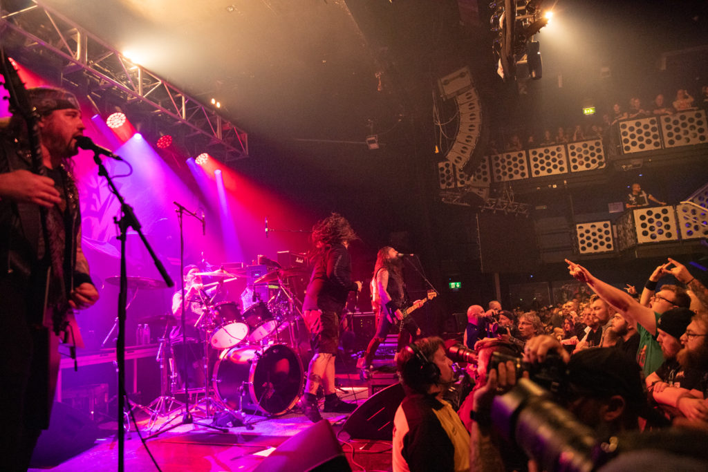 Generally comprising punk rockers who’d learned to play their instruments and been seduced by the lure of metal, they often gravitated towards the thrash scene, to which they brought belligerence and highly political lyrics. Veteran touring partners of tonight’s headliner, these guys are no spring chickens and are at their best when they get a good chug going.