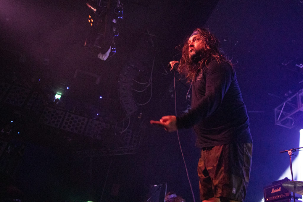 “We are Municipal Waste from Richmond, Virginia.” Yes, sir: indeed you are. The hairy greaseball thrash quintet certainly look the part and seem delighted to be cavorting on a larger stage, having previously played locally at venues like The Croft. They also waste no time in rattling through a brisk set.