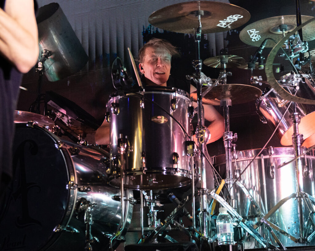Possibly suffering from cello envy, Mikko Sirén has brought along the most enormous drum kit, including electronic percussion and more cymbals that anyone could possibly need, though he manages to play all of them.