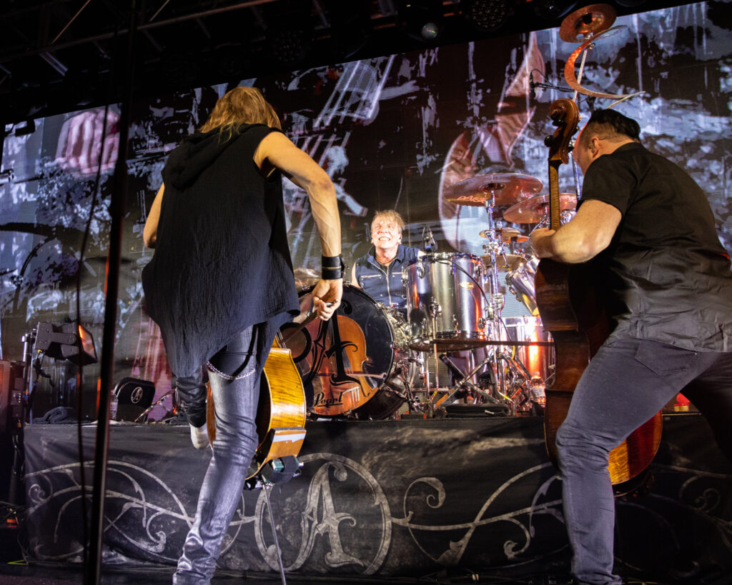 Eicca Toppinen has done all the talking on previous shows in Bristol, but tonight lead cellist Perttu Kivilaakso introduces the band and makes some quips about being Finnish. He’s also the most rock’n’roll member of Apocalyptica, throwing himself around, rolling on the floor and even playing his cello behind his back. It’s all remarkably coordinated, given that you could easily have someone’s eye out with the pointy end of one of those things, but they’ve been at this for a long time now and know what they’re doing.