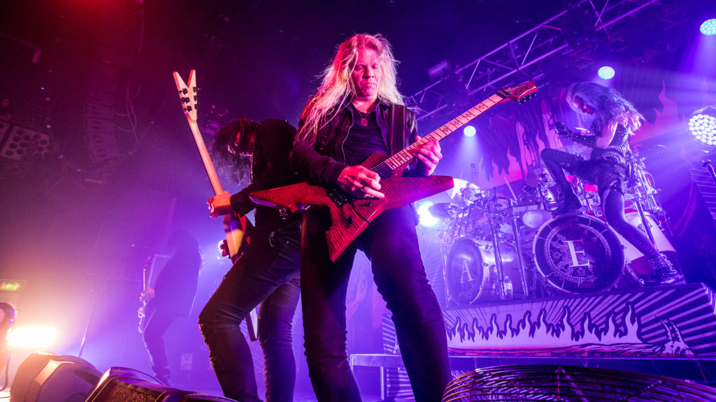Arch Enemy are a band whose time has come. But it’s taken long enough. Tonight the Academy is packed, but the band’s previous appearance here, supporting Kreator back in December 2014, was less well attended. It also seemed rather baffling that an act of this calibre should be supporting the solidly second division veteran German thrashers nearly 20 years into their career. Clearly, the metal audience was slow to catch on, but new album Will to Power has proven Arch Enemy’s most successful to date. This upswing in fortunes has certainly put a spring in their step.
