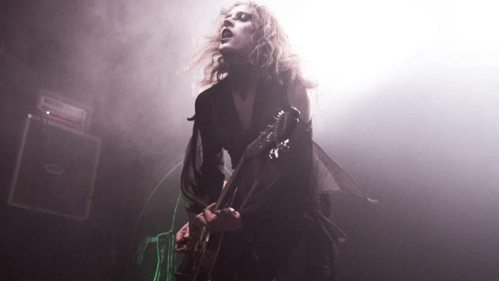 It’s the last night of a long tour, but she simply doesn’t stop moving all evening: headbanging, swinging her microphone stand, scaling the drum riser and bouncing up and down as she covers every inch of the stage while emitting a cathartic guttural bellow that puts many a male death metaller to shame. Anyone still harbouring any doubts about the vitality-enhancing properties of a vegan diet need look no further for evidence to the contrary.