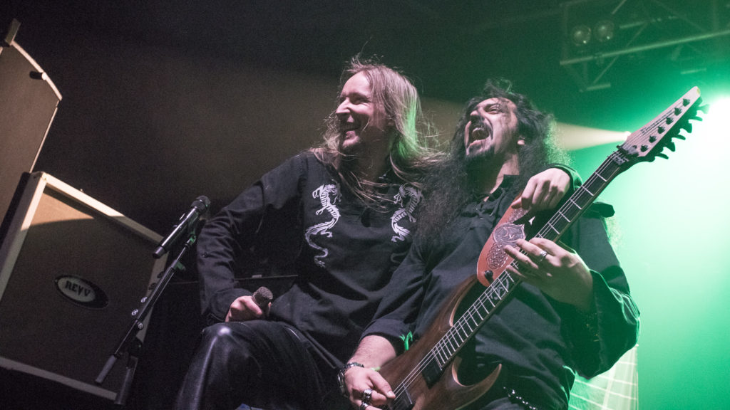 It’s fair to say that much of the recordings’ subtlety is lost in the bludgeon of this performance, for which all the keyboard parts are pre-recorded, but the well-drilled band certainly succeed in opening up a mosh pit. Few Wintersun songs clock in at less than 10 minutes in duration and most of them stretch on towards the 15 minute mark. They’re at their best mining Mäenpää’s folk metal background for the likes of Sons of Winter and Stars, which is packed with sweeping melodies and chanted choir vocals reminiscent of Tyr (members of whom contributed to the recording).