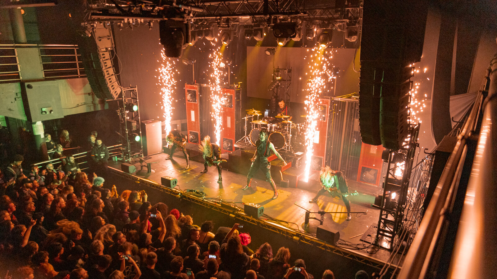 The driving title track from new album Dance Devil Dance proves a perfect opener, the entire band being in lockstep with their formation headbanging and hair swinging.