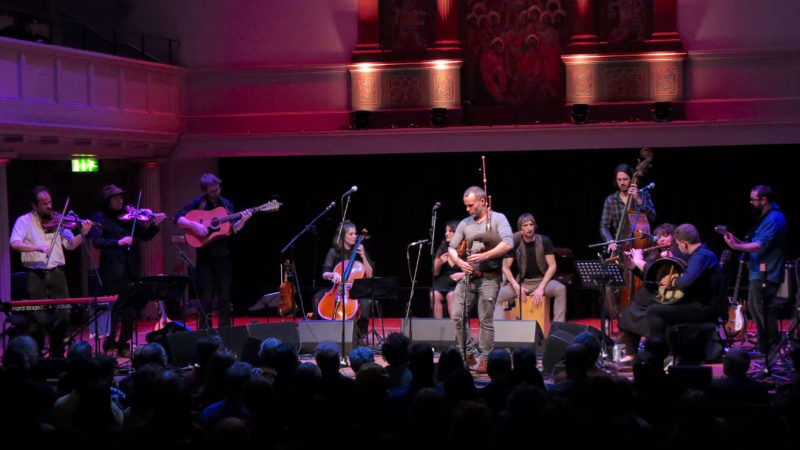 Of course there were folk tune sets, which prompted a few brave souls in the balcony to dance along the aisles, and again the arrangements made great use of the band’s multi-instrumental resources. Whenever they appeared Dave Tunstall’s sharp sounding border pipes could be relied on for a welcome cheer, but Ewan MacDonald’s ringing cittern also added distinction. These sets were the more raucous part of the evening, and rightly so, yet never ragged and always crisply rhythmical.