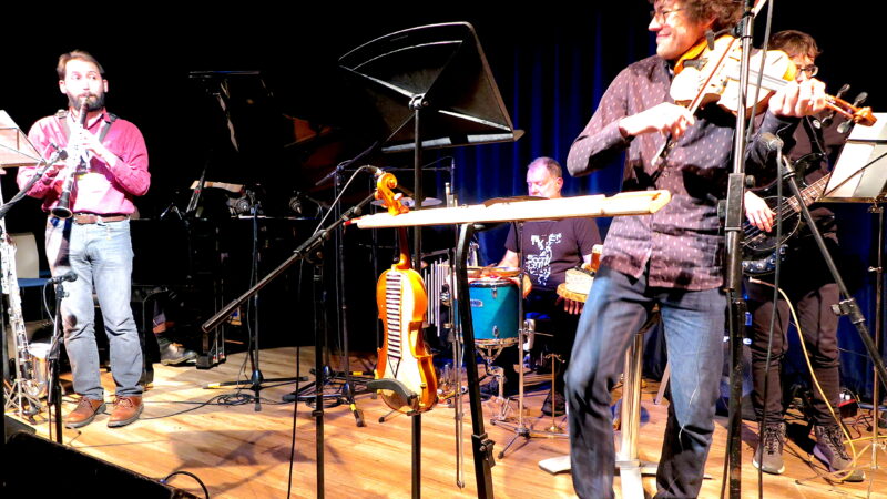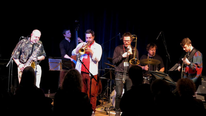 The evening rounded off with a very big noise: improvising behemoth Paul Dunmall’s latest quintet boosted by regular collaborator Percy Pursglove and delivering a masterclass in collaborative freedom. They kicked off at full tilt, launching a sequence of thrilling moments including a respectful adaptation of John Coltrane’s Peace On Earth that somehow devolved into the Mannish Boy groove. While Paul’s vigorous saxes sparkled throughout some very ear-catching playing by guitarist Steven Saunders was a revelation.