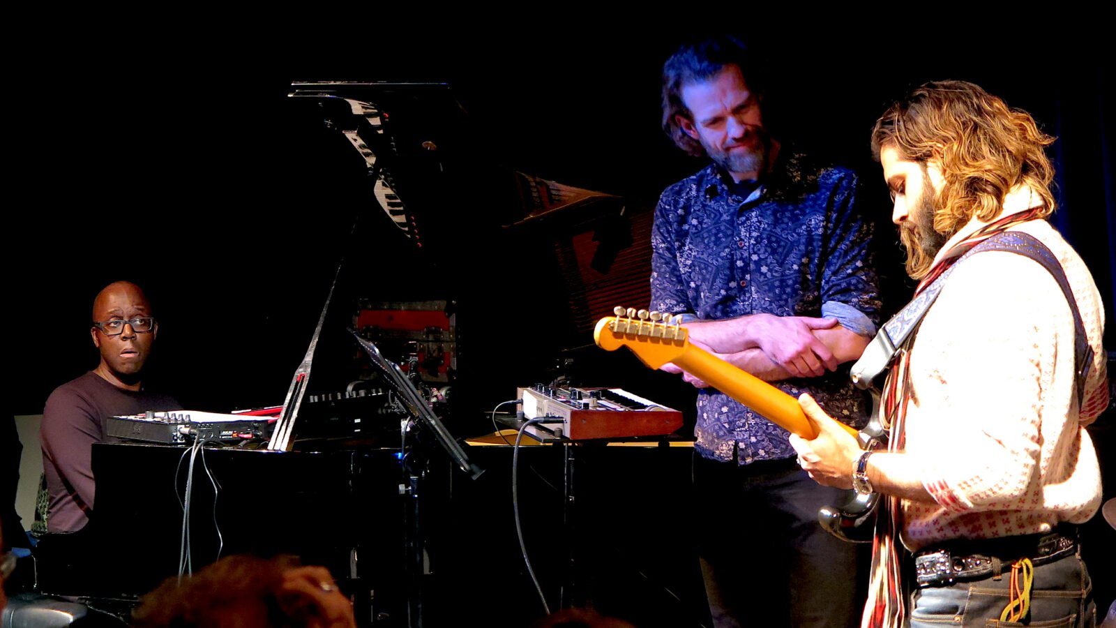 The evening rounded off with a very big noise: improvising behemoth Paul Dunmall’s latest quintet boosted by regular collaborator Percy Pursglove and delivering a masterclass in collaborative freedom. They kicked off at full tilt, launching a sequence of thrilling moments including a respectful adaptation of John Coltrane’s Peace On Earth that somehow devolved into the Mannish Boy groove. While Paul’s vigorous saxes sparkled throughout some very ear-catching playing by guitarist Steven Saunders was a revelation.