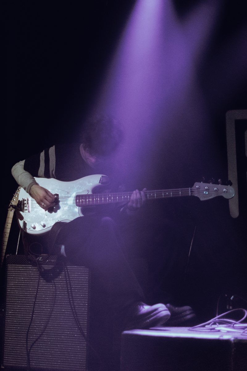 In contrast, Takedown is one of the rarer slow moments in the live set; frontman Sam Slocum plays an acoustic guitar, a new addition to the band, while bassist Nico Brunstein sits on an amp towards the back of the stage by drummer Laila Wayans.