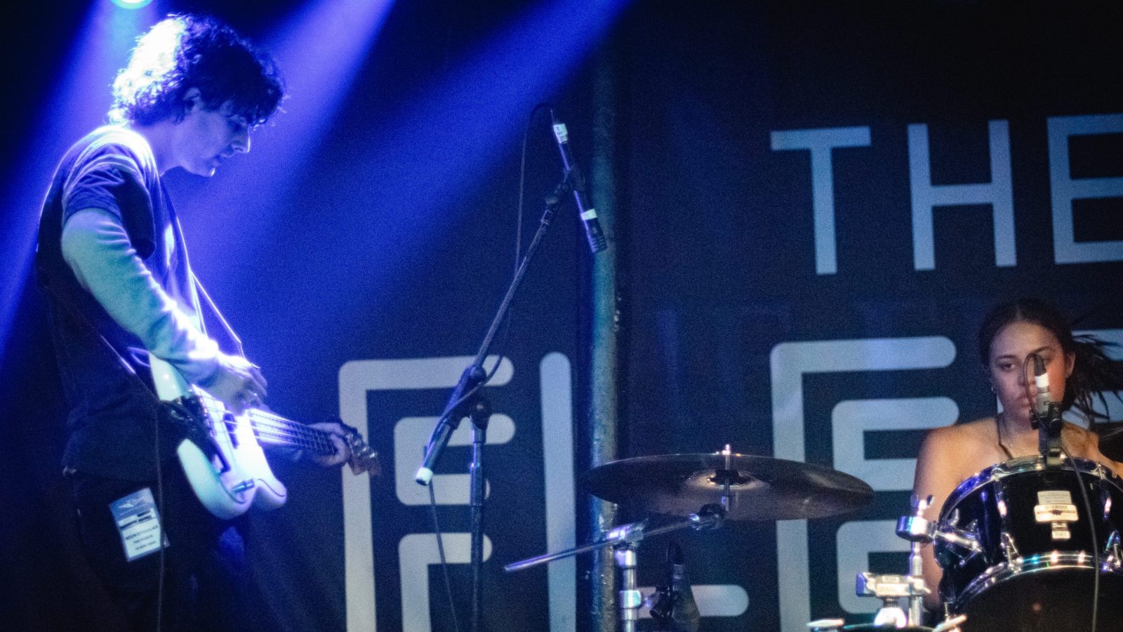 In contrast, Takedown is one of the rarer slow moments in the live set; frontman Sam Slocum plays an acoustic guitar, a new addition to the band, while bassist Nico Brunstein sits on an amp towards the back of the stage by drummer Laila Wayans.