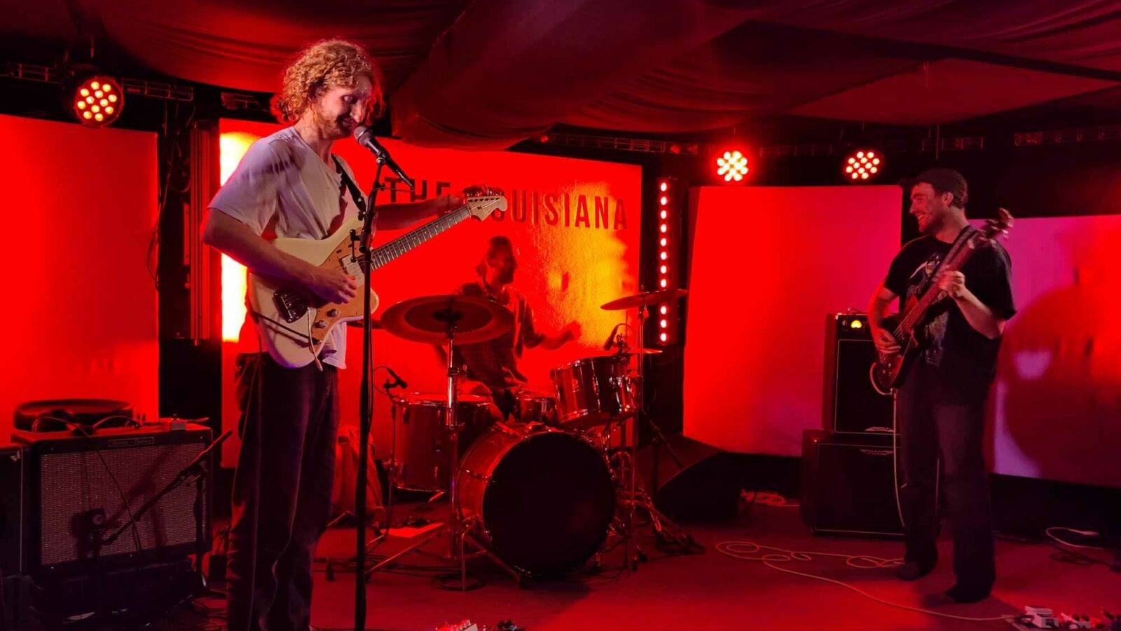 The trio are swaggering from the outset. Their opener features heavy chords with bouncy, jazzy breakdowns and the vocalist’s signature psych-scat poetry; it’s repeated ‘don’t forget what you came for’ sentiment and upbeat psychedlia feel akin to that of Alabaster dePlume.