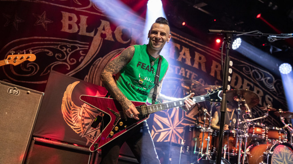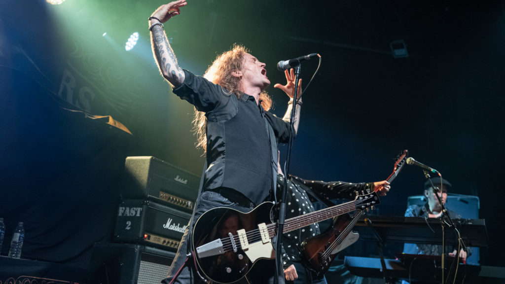 Meanwhile, on the other side of the stage, Damon Johnson’s replacement, former Dee Dee Ramone/Stone Sour guitarist Christian Martucci, is playing his very first gig with BSR. Breaking with men-in-black sartorial tradition, he sports a green shirt and a mohican, proving to be a major asset as he bounces around like the proverbial dog with two dicks. “Are you going to be staying with us?” asks frontman Ricky Warwick, who’s clearly delighted with this punky energy injection. “You betcha!” he grins.