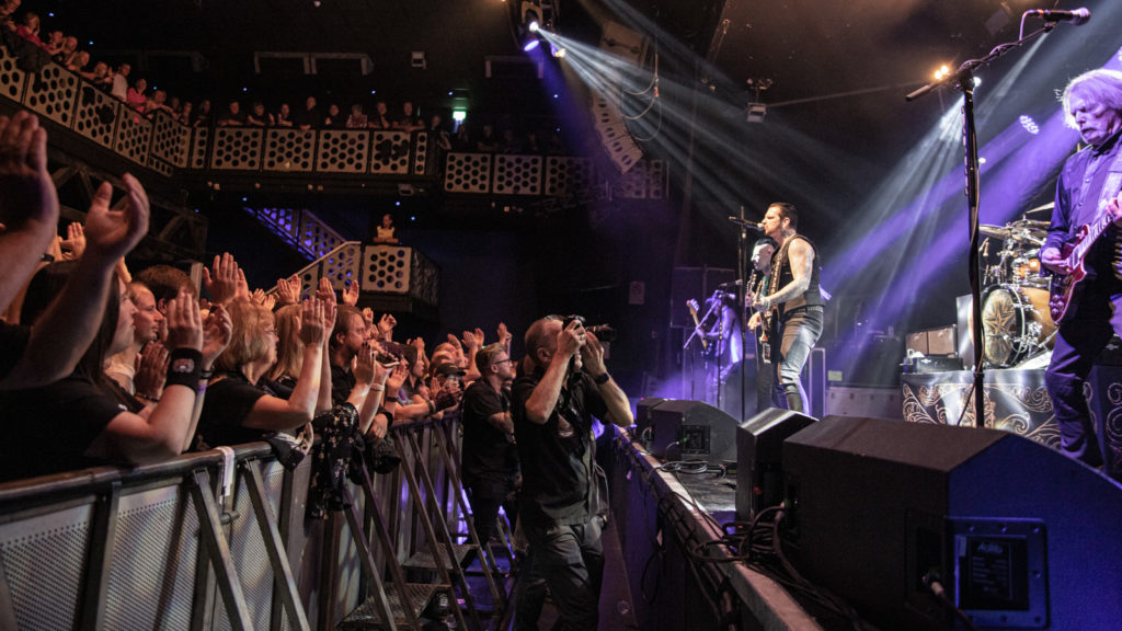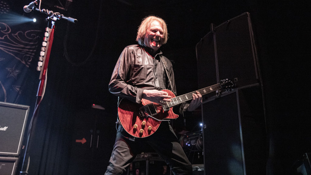 This being the first night of a lengthy trek, some glitches are inevitable. But it’s poor ol’ Scott Gorham who seems to be experiencing the most difficulty, which becomes glaringly apparent during Testify or Say Goodbye. A guitar tech scuttles on and begins fiddling. By the end of the show, he’s still fiddling. Rather than throwing a guitar hero-style strop, the laidback Californian just takes it all in his stride. Fortunately, it doesn’t affect his performance appreciably.