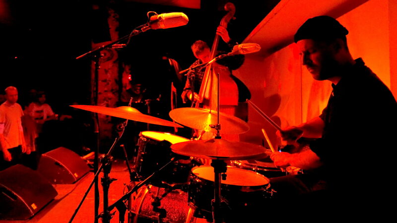 One theme was the exploration of voice, exemplified on the opening night by Elaine Mitchener and Lonnie Holley (see earlier review) and further displayed by two acts in St George’s on Saturday night. Scots veteran of the free music world Maggie Nicols teamed up with youngster percussionist Dan Johnson, the latter kneeling in a circle of instruments. From a silent pause their music grew and swerved, Maggie’s extraordinary range of vocal sounds at times implausibly powerful, at others mumblingly gentle or dislocatingly ethereal. Throughout, Dan coaxed and enriched her flow of ideas towards its anguished climax referencing the crisis in Gaza. That issue was also a recurrent theme for Matana Roberts who used the call and response of protest marches to engage an audience that eventually would provide them with a three-part choir as they toyed with snatches of Gospel songs. Equally impressive, however, were their bursts of soprano sax, richly-toned and fluent, hinting at free-playing giants like Albert Ayler or Anthony Braxton.