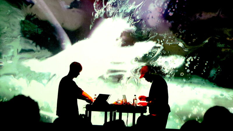 The dynamic energy of their set didn’t sustain itself into headliner Klein’s closing show, however. Seemingly lost in smoky darkness it felt as though it began with technical difficulties before thrashing post-punk guitar chords established an insistent pulse. It was strangely reminiscent of church bells, yet with a harshness emphasised by fierce strobe lights, with simplistic line drawings adding an enigmatic counterpoint. People drifted over to the main hall where a packed ground floor audience shuffled under the beautifully relentless graphic evolutions of Ryoji Ikeda with its accompanying soundtrack of mashed up electronic dance music, moments of reggae bliss or drum and bass tension blurring into one another beautifully.