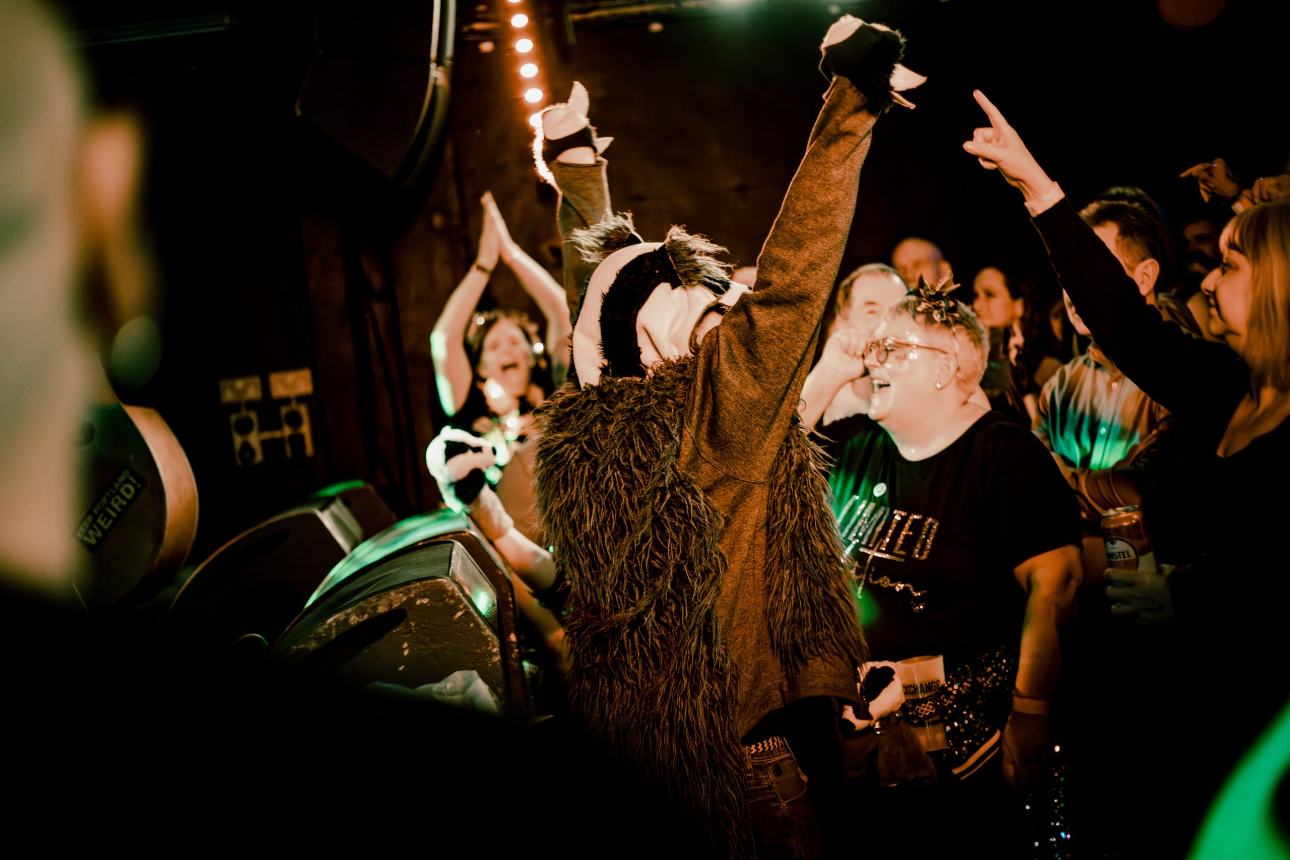 A member of the crowd dressed as a badger did a “badger dance” at the front of the stage