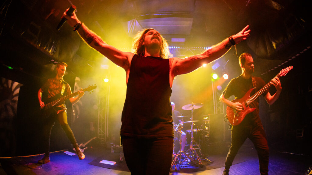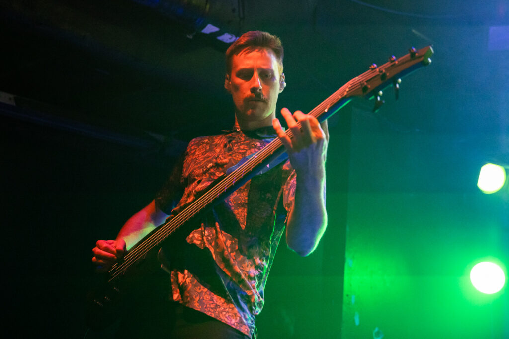 First up are Four Stroke Baron (“a band that over seven billion people don’t know about”), who were previously seen opening for VOLA and Voyager at the Fleece. The sound’s a little muddier than last time, but they make excellent use of their 30 minute slot to deliver an impressive set of thoroughly modern prog/tech-metal.