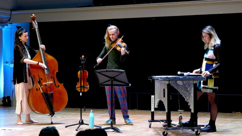 Stevie Toddler (bass), Alex Garden (violin), Harriet Riley (vibraphone) (pic: Tony Benjamin)