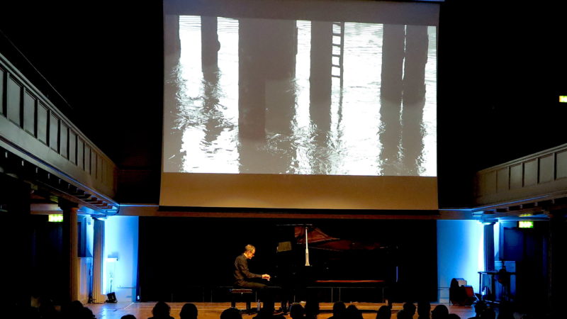 Pete Judge (piano) under Kathy Hinde’s visuals (pic: Tony Benjamin)