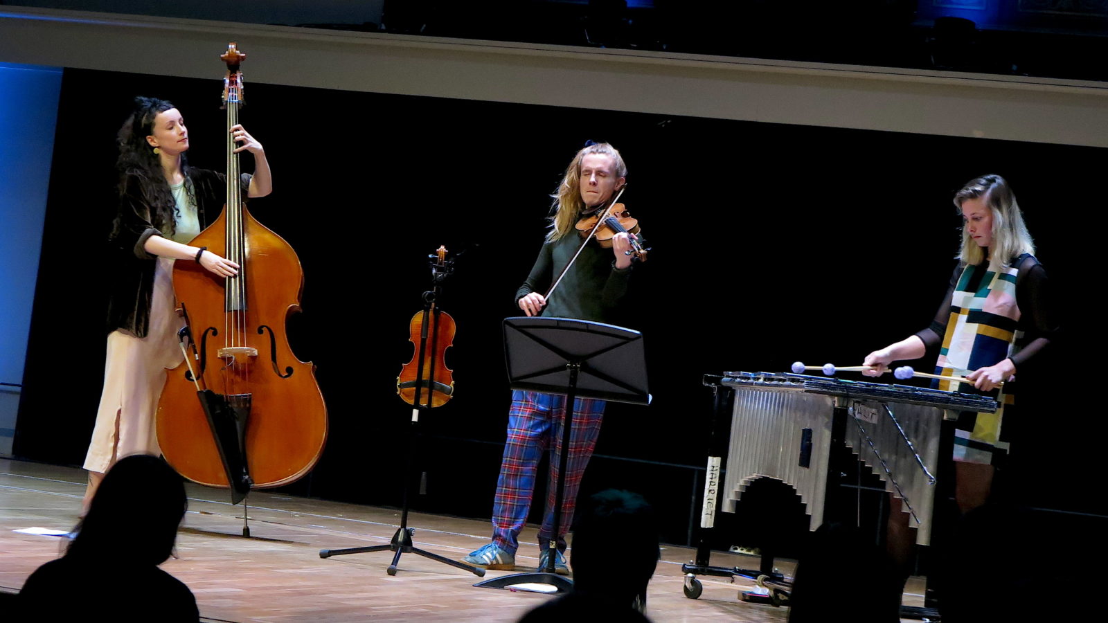 Stevie Toddler (bass), Alex Garden (violin), Harriet Riley (vibraphone) (pic: Tony Benjamin)